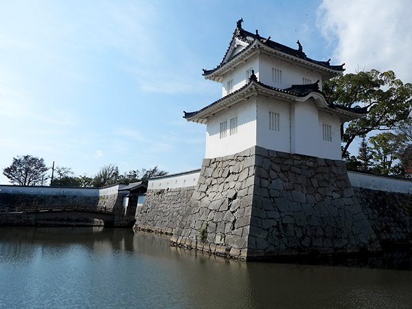 正保 2年(1645年)、常陸国笠間から転封された浅野長直(あさのながなお)が、三角州の先端という要害の地(戦いで重要な地)にあった陣屋を、慶安元年(1648年)から13年を費やして近世城郭へと整備した。築城に当たっては甲州流軍学と山鹿流軍学を取り入れ、折れを多用した縄張りが特徴的。本丸、ニノ丸、三ノ丸のすべての郭が残された貴重な近世城郭遺構である。