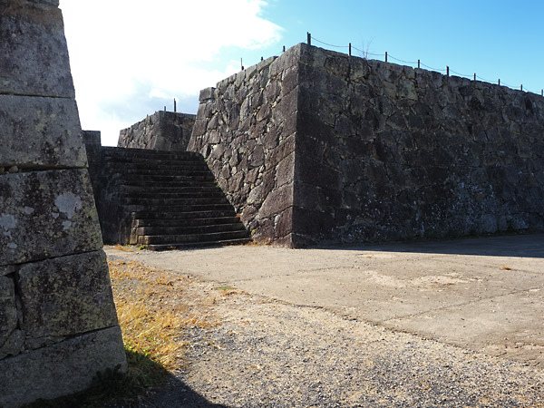 主な遺構は、本丸、二の丸、三の丸、石垣など。
