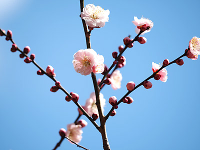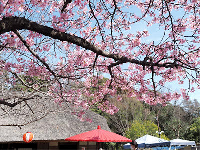 3月に入り、郷土民家園では「民家園の春まつり」が開催されていて、昔ながらの玩具の貸し出しや、手作り品の販売、人間浄瑠璃の上演などがありました。園内の河津ざくらはちょうど満開、年々大きくなり彩をそえていました。(2026年3月1日撮影)